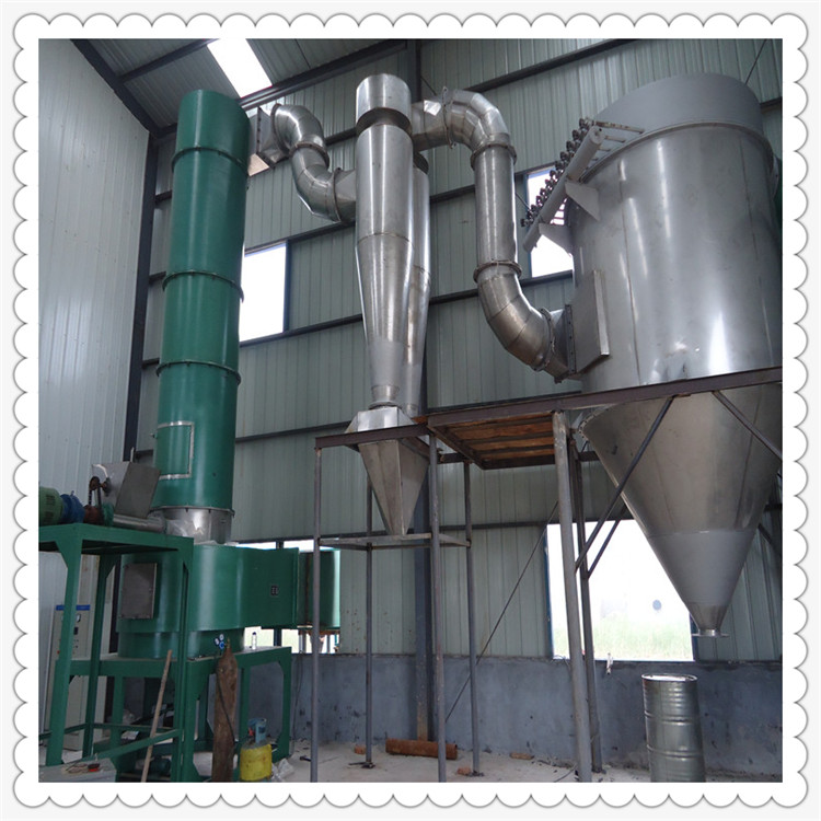 热空气切线进入干燥器底部,在搅拌器带动下形成强有力的旋转风场。膏状物料由螺旋加料器进入干燥器内,在高速旋转搅拌桨的强烈作用下,物料受撞击、磨擦及剪切力的作用下得到分散,块状物料迅速粉碎,与热空气充分接触、受热、干燥。脱水后的干物料随热气流上升,分级环将大颗粒截留,小颗粒从环中心排出干燥器外,由旋风分离器和除尘器回收,未干透或大块物料受离心力作用甩向器壁,重新落到底部被粉碎干燥。