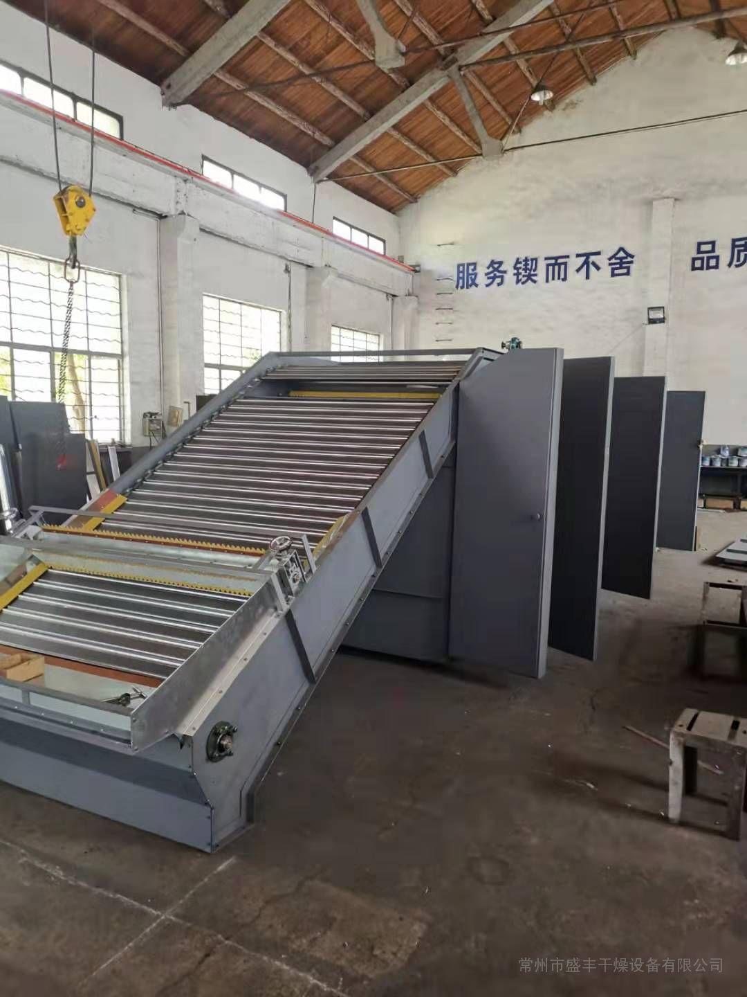 椰丝烘干机、带式干燥机是成批量生产的的自动化连续式干燥设备。厢内设有多层传送带,传送带在厢内循环运动。物料均匀分布在*层传送带上,通过链条的传动,由*层网带倒入下一层网带,下层反向交替逐一直落到zui后一层网带,此时物料水份也达到烘干要求。空气循环采用逆流工艺,高温低湿空气从干燥机zui下层网带向上穿流,进行传质传热,从而达到去除水份的目的,尾气通过引风机由顶部排出。